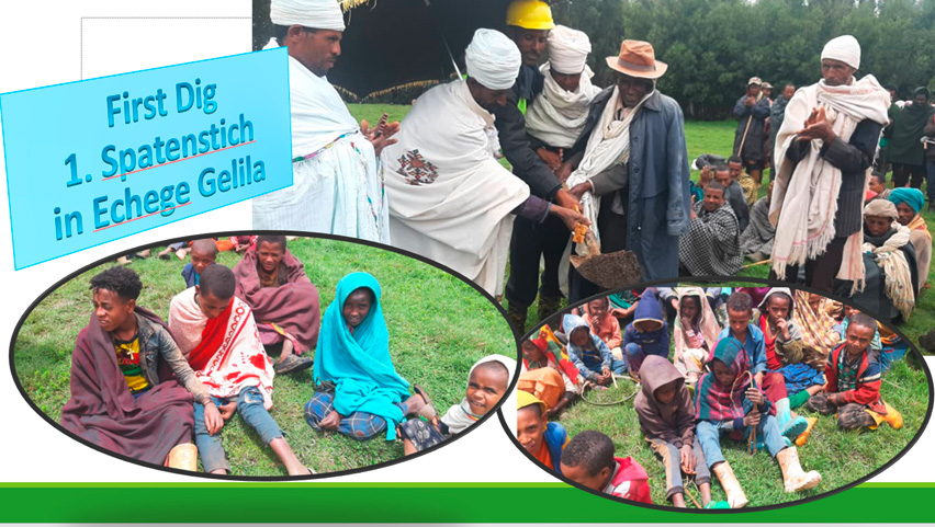 Nachdem genügend Spenden für den Neubau der Schule in Äthiopien gesammelt wurden, konnte am 05.08.2024 der 1. Spatenstich synchron in der Landeshauptstadt Bahir Dar und in der Gemeinde Echege Gelila erfolgen.